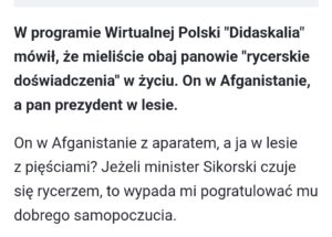 „”quasi-rycerskie epizody” (…)Ja w Afganistanie, a pan prezydent to bardziej na ustawkach”